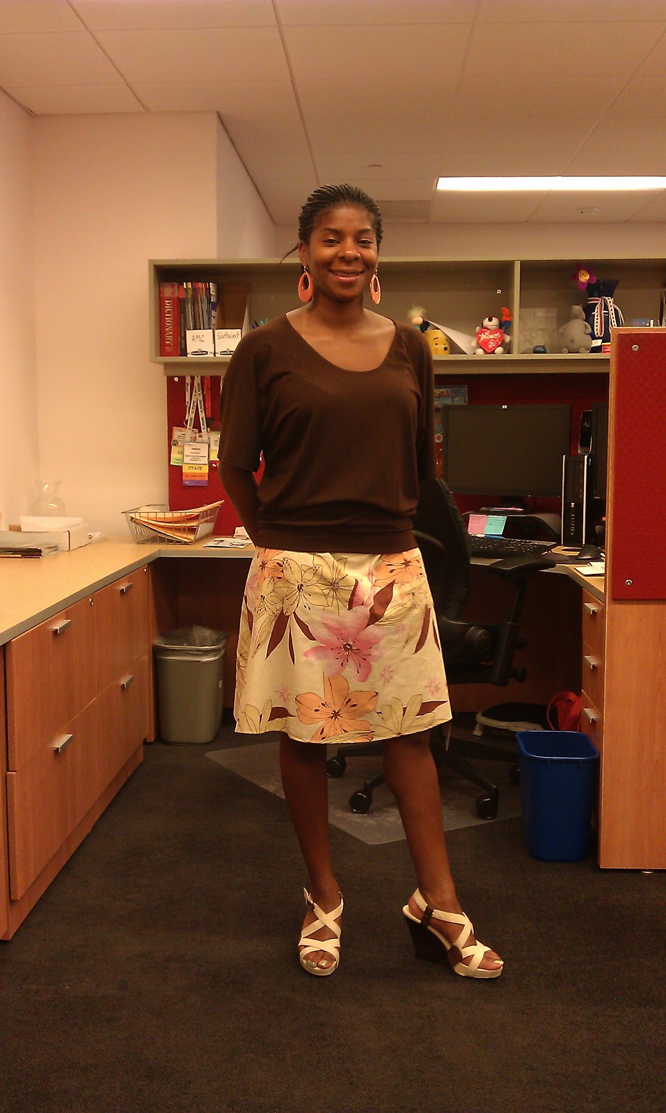 It was pretty warm this day and he REALLY...REALLY...REALLY wanted to put me in a skirt. So he chose this cream and brown a-line skirt with a pair of shoes I haven't worn since Michael Jackson (RIP) was black.To be truthful, I totally forgot I even had the shoes. Whats even better, he got rave reviews for the shoes from some of my twitter follows. #fistpump. To top it off, he opted for a pair of rose colored earrings that matched the flower in the skirt. How do you think he did for Day 2? Did he step his game up? Or did he play it safe?